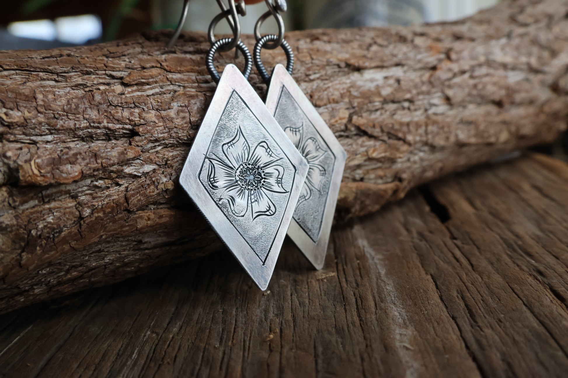 Hand Engraved Diamond Earrings