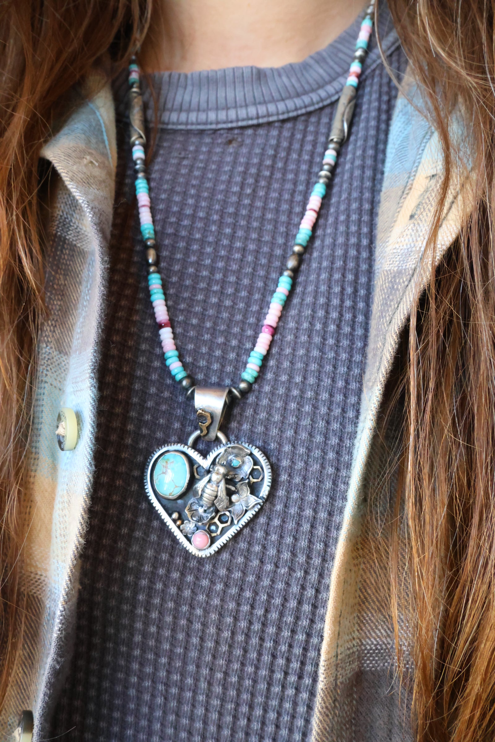 Honey Bee flower heart pendant