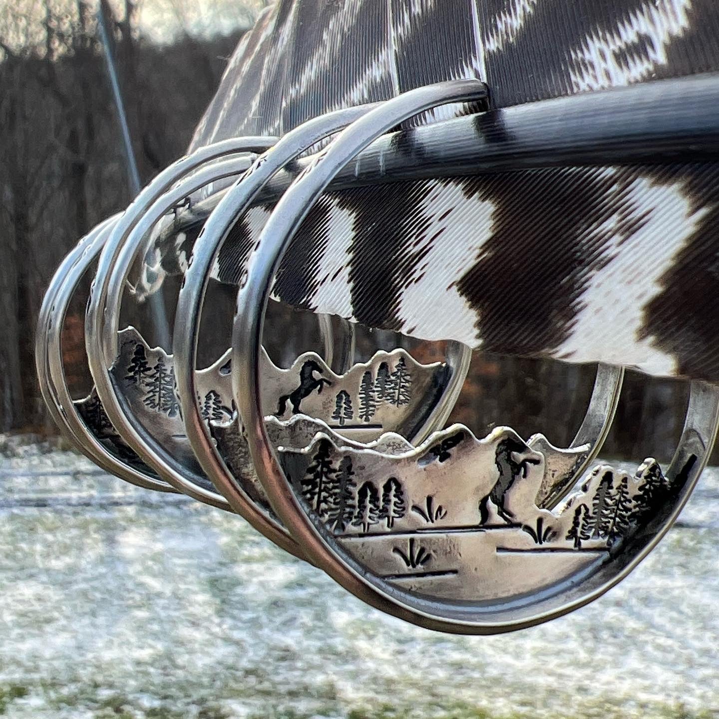 Hand stamped hoops and horse scene